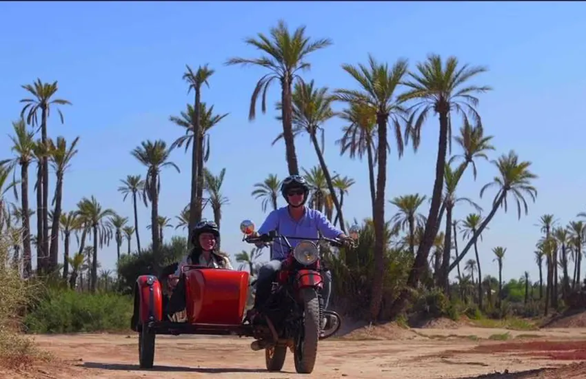 Born from the founder’s twin passions—motorcycles and travel—this experience is not just a tour but a day out with a friend who is a long-time resident of Marrakech. With an encyclopedic knowledge of the city, your guide will open your eyes to a different side of the red city. Start in Guéliz, the new city, and marvel at its old Art Deco buildings, open-air cinema, and the first hotel built in 1918. Travel through the history of the 20th and 21st centuries of Morocco, then journey into the Medina to witness local life in the Kasbah district, the Mellah (old Jewish quarter), and the bustling Bab El Khemiss flea market. Finish your adventure in the lush palm grove, a unique oasis known for its luxurious villas and ancient irrigation systems that have sustained the region for nearly a thousand years. Let our travel specialist offer an intimate exploration of the ocher city on a vintage sidecar motorcycle. Our knowledgeable guides will pilot you through the splendors of Marrakech, providing a personalized and unforgettable adventure.